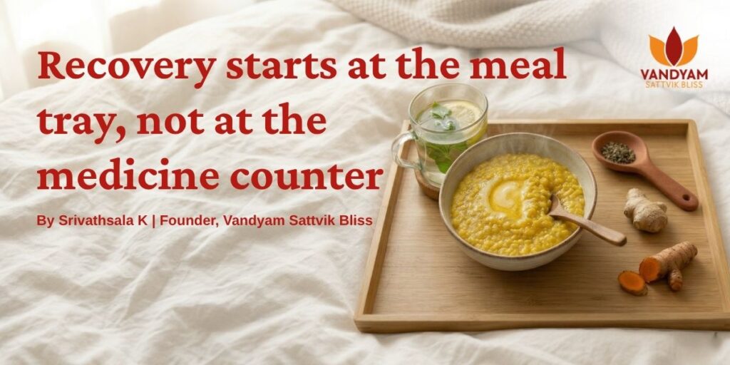 A patient recovers from surgery. The attendant brings the first meal. It is heavy, spiced, sitting in a container that has been waiting for hours. The body