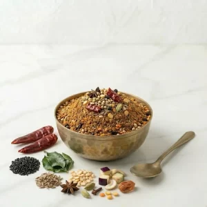 Elevate your daily meals with the perfect balance of Sattva. Our traditional Masalas are carefully crafted from pure, mindful ingredients to gently enhance flavor and aid digestion without causing restlessness or metabolic heat. Bring the authentic, soothing warmth of ancient heritage directly to your kitchen.